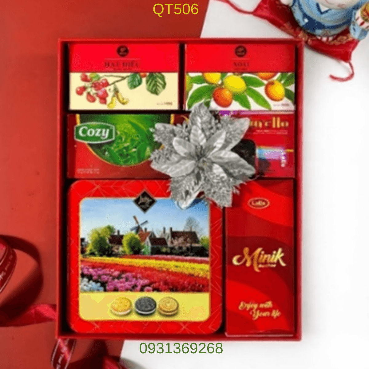 | Hộp quà Tết kèm túi giấy + Logo + Thiệp | 29×36 |