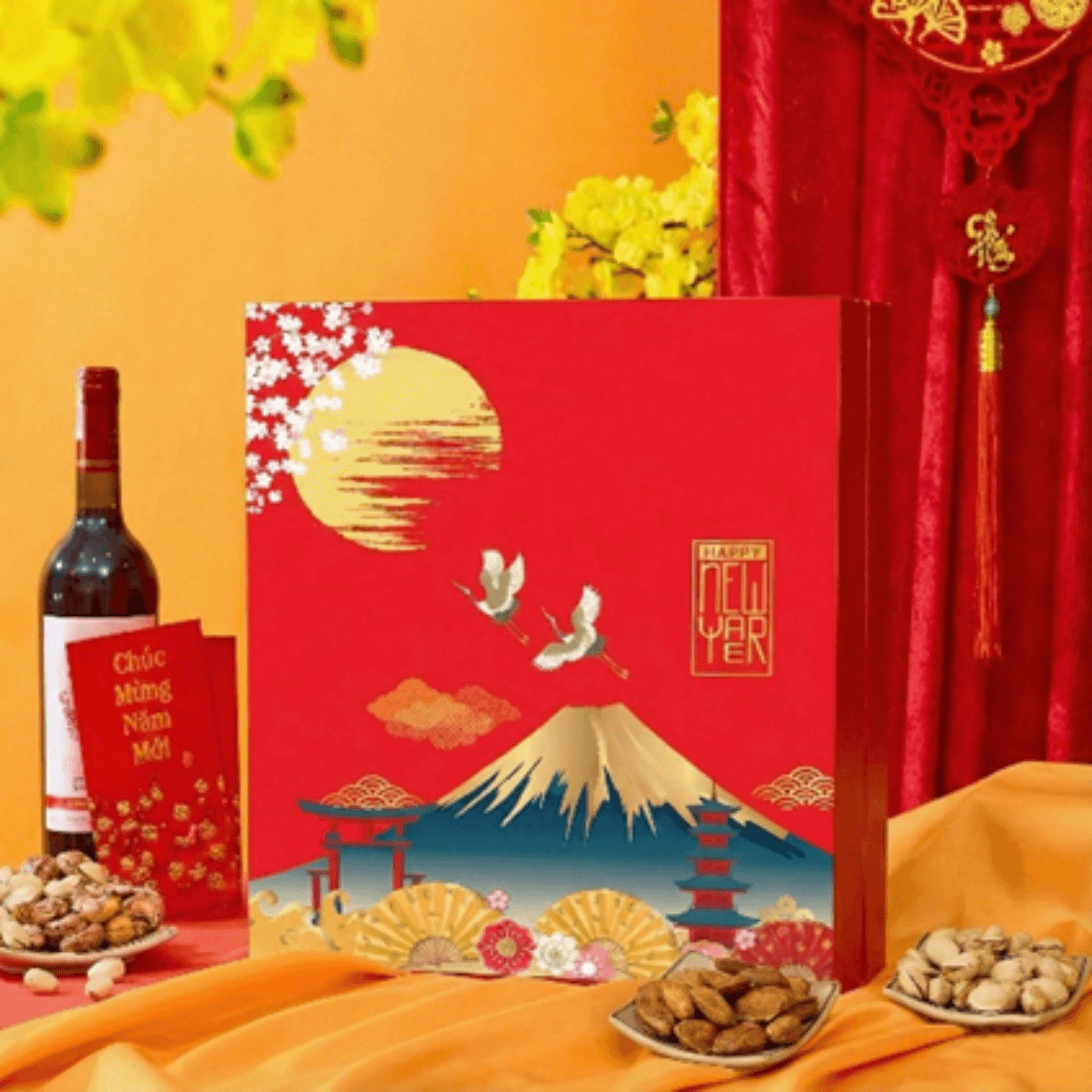 | Hộp quà Tết kèm túi giấy + Logo + Thiệp | 29×36 |